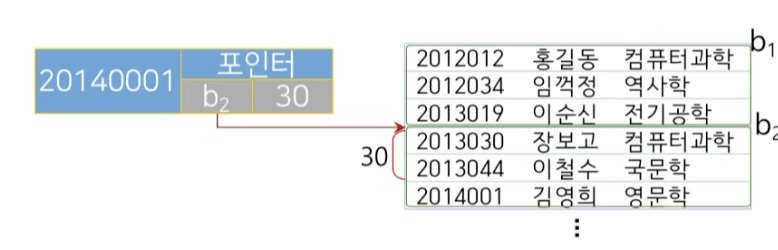 -모든 레코드에 대해 탐색키값, 포인터 쌍을 유지