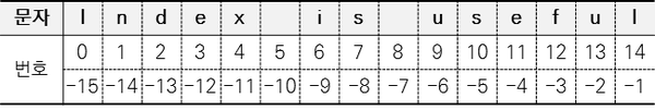 파이썬은 순서를 0부터 센다. 끝에서부터는 -1부터 센다.